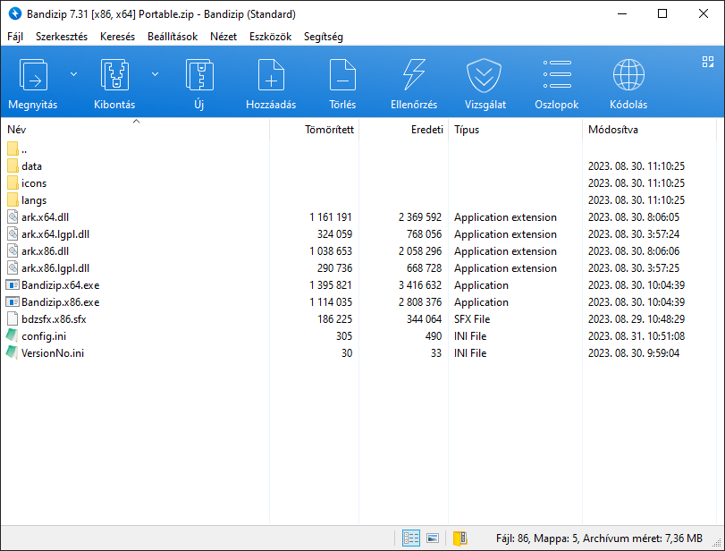 Ingyenes tömörítőprogram a WinRAR alternatívájaként. Tömörít ZIP-et, 7z-t és önkicsomagolós EXE-t is, kicsomagolni viszont sokkal többféle formátumot képes.
