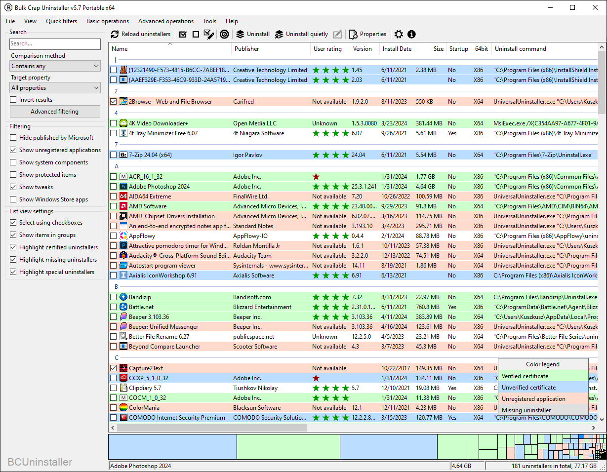 Nagyobb takarításnál jól jön, hiszen listázza azokat a programokat is, amik beragadtak, esetleg hibás az uninstaller-ük, illetve engedi ezek együttes kijelölését és beavatkozás nélküli eltávolítását.