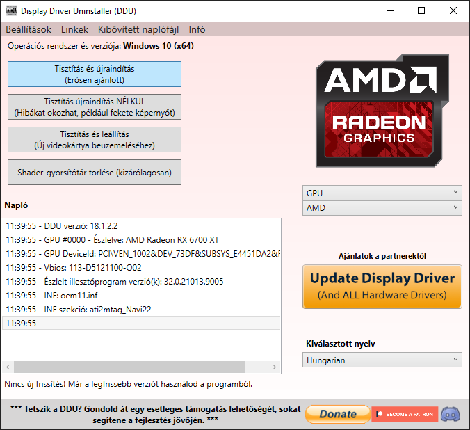 A Display Driver Uninstaller (DDU) egy speciális eltávolítóprogram, amely teljesen el tudja távolítani az NVIDIA, AMD és Intel grafikus drivereket a rendszerből. Ezen felül a Realtek és a Soundblaster audio illesztőprogramokkal is elbánik.