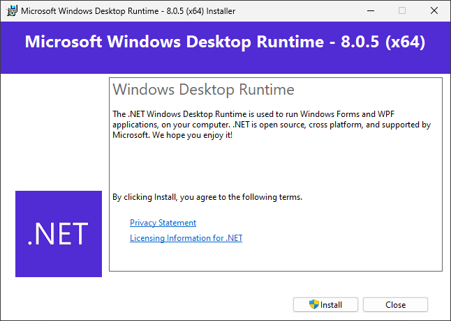 Futtatói környezet a .NET-es programok számára a .NET Framework utódjaként. Tartalmazza a .NET Runtime és a .NET Runtime Core alapot is. A frissítéshez nem kell leszedni az előző verziót, csak futtatni kell az újabb telepítőt.