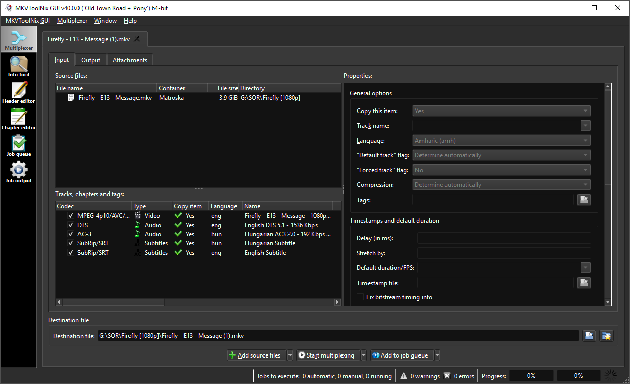 Az MKV konténerfájlok szerkesztője. Ezek a fájlok tartalmazzák a videót, képet, hangot és feliratot, amik közül eltávolíthatjuk a programmal a felesleges sávokat. A fájl szerkesztése nem kíván videó újratömörítést, csupán az új helyre másolást kell kivárnunk. A nagyobb sebesség miatt érdemes a forrás- és a célmappához külön HDD-t választani.
