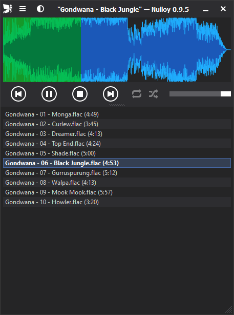A Nulloy a lehető legegyszerűbb zenelejátszó, amelynek sajátossága a hullámforma alapú időcsúszka, így a számokban könnyen vizuálisan is navigálhatunk. Támogat több népszerű formátumot (pl. MP3, FLAC, OGG, WMA), egyszerű felülete pedig kifejezetten a gyors és könnyű használatra épül.