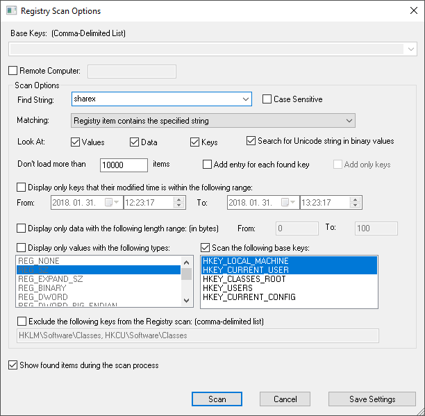 Gyors registry-kereső. A kilistázott elemekre duplán kattintva egyből a registry megfelelő pontjára navigál.